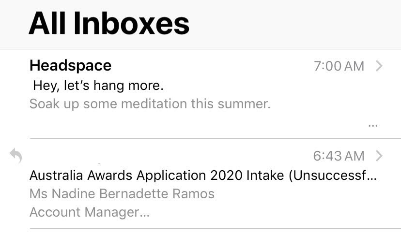 I first saw grad school as an easy way out (such as it is): a scholarship meant that I got to live somewhere else for two years and not have to worry about living expenses. In this train of thought, formal education was simply a side benefit—what was primary was the opportunity to leave. I tried first in 2019 for the Australia Awards and failed.